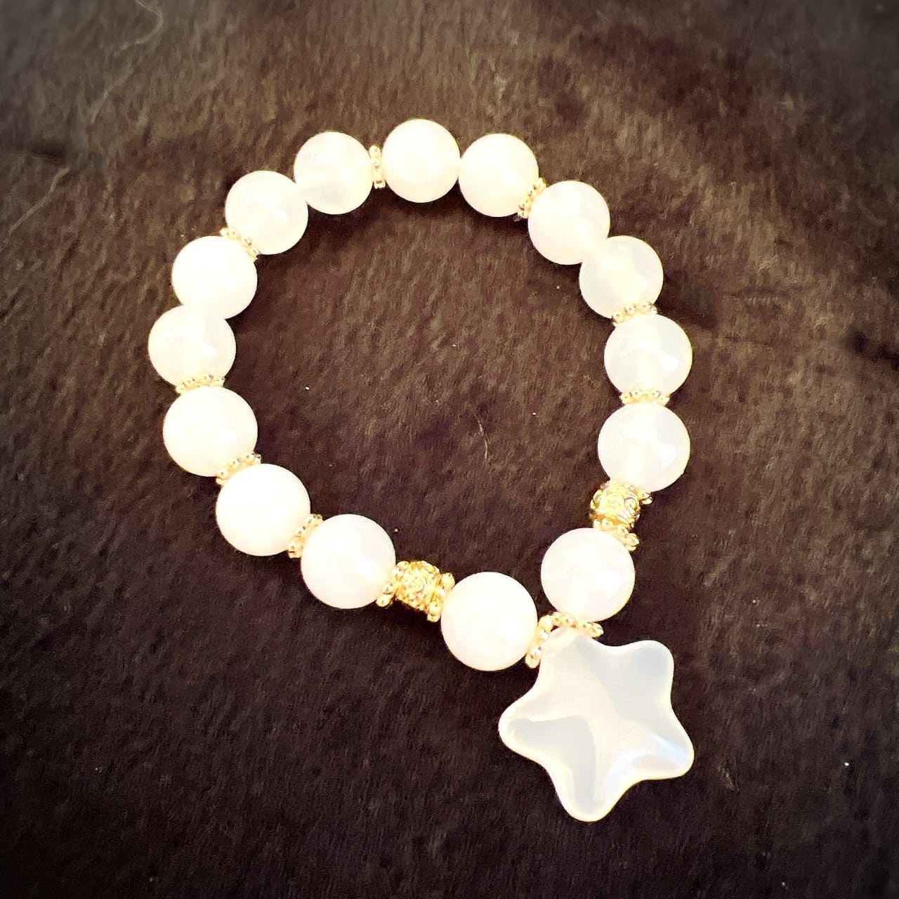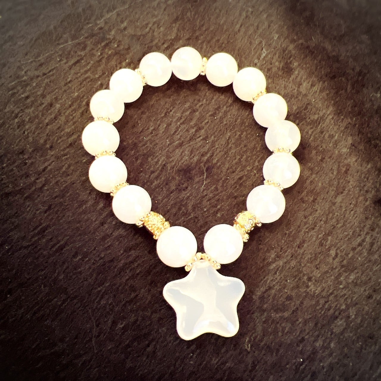 黒いオニキスに比べて産出量が少なく、希少で上品な天然石。
