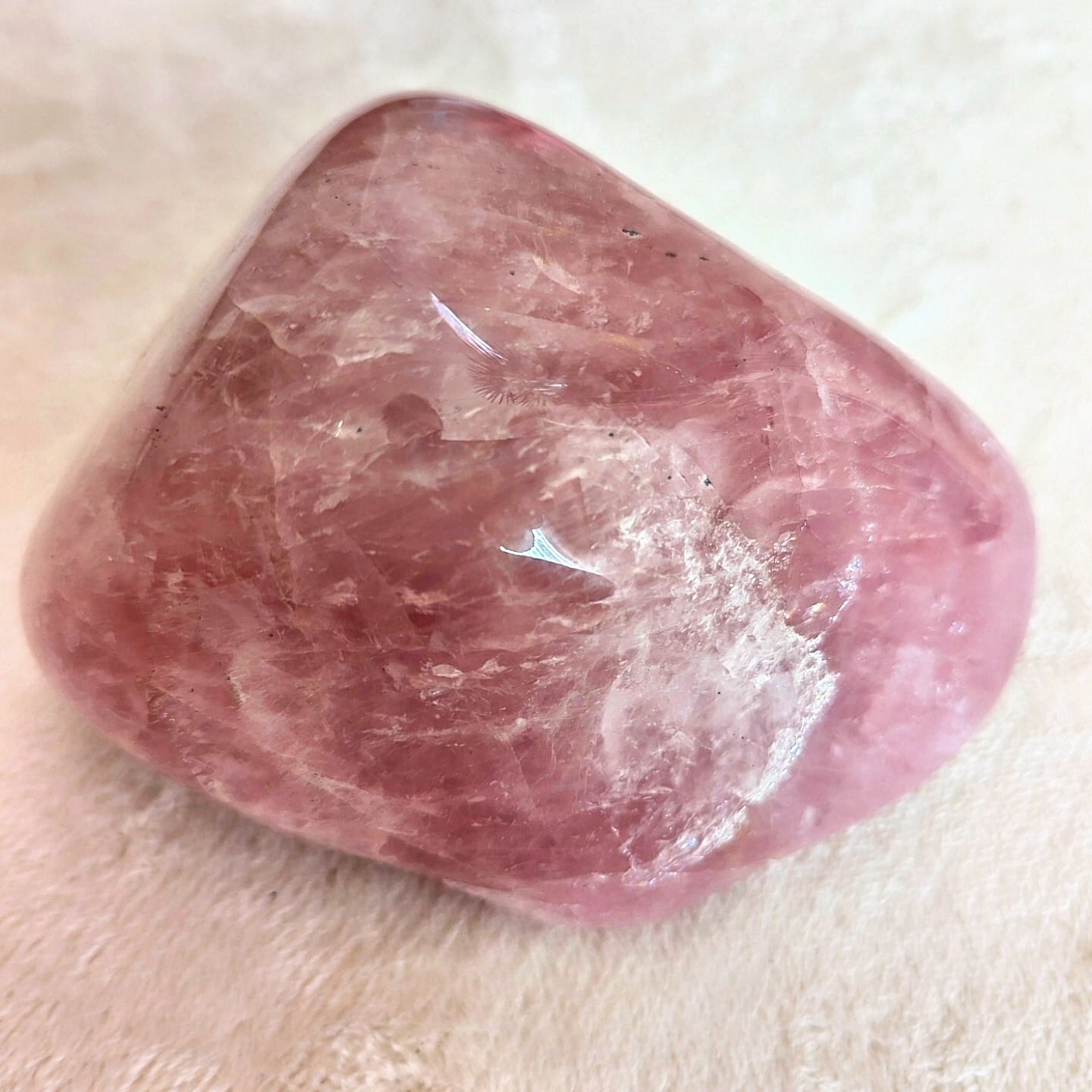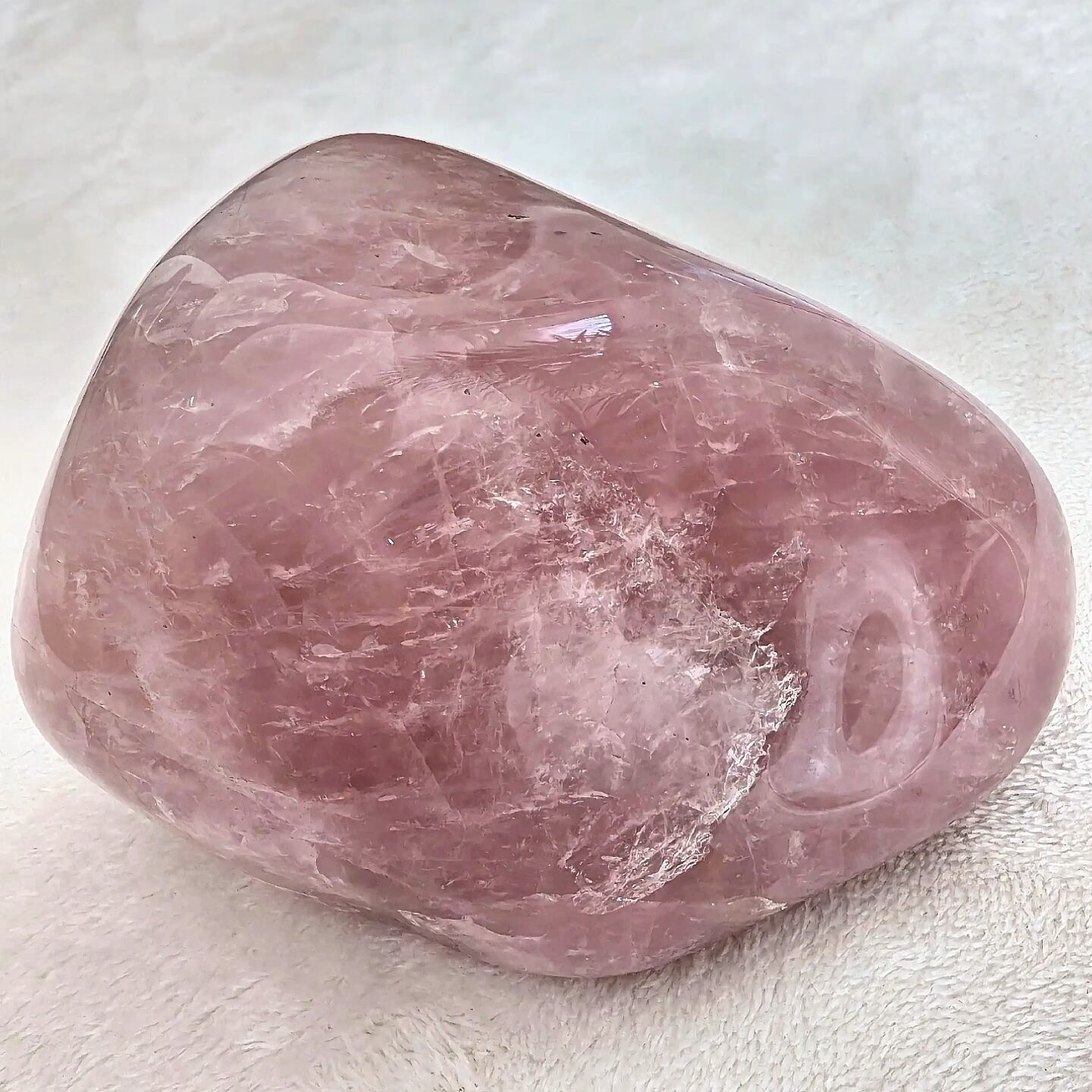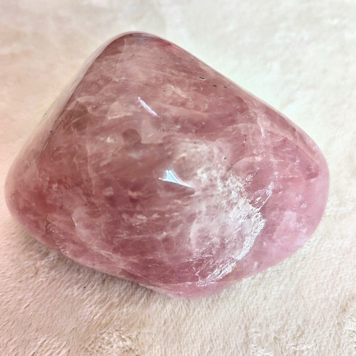 ローズクォーツの原石、一点ものです。