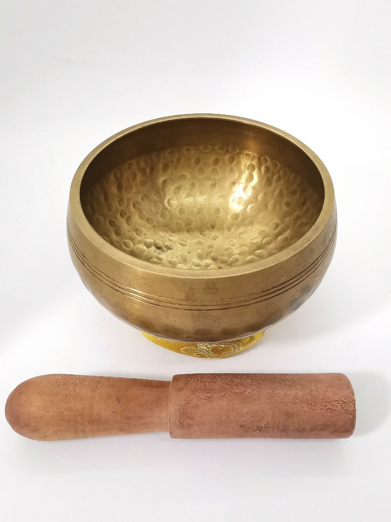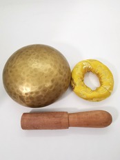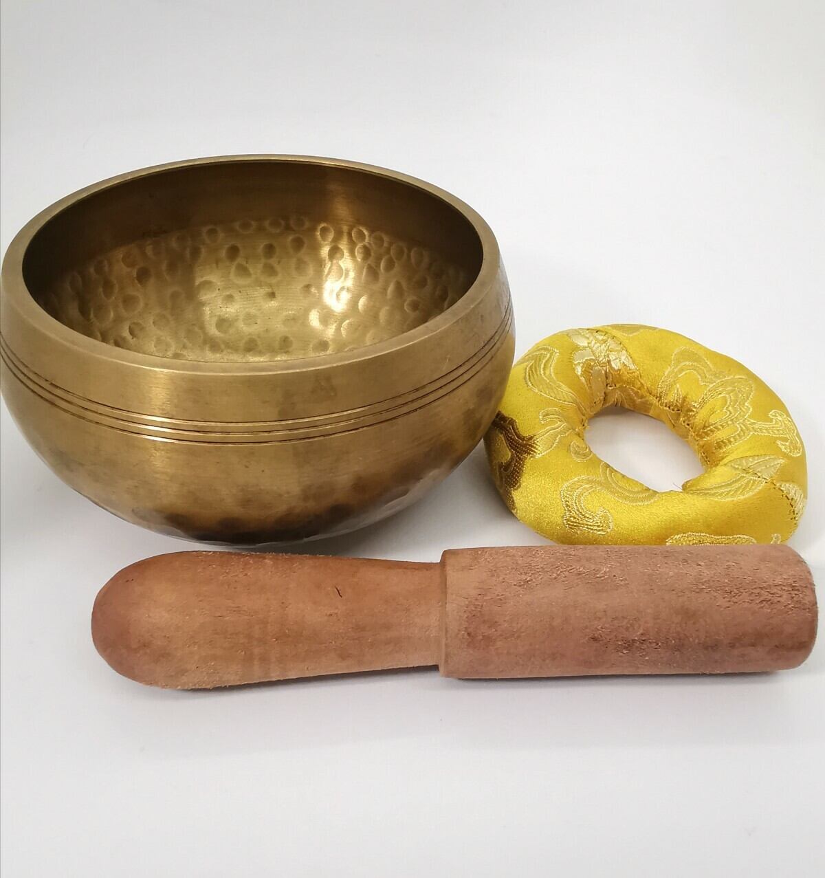 浄化にオススメ! 本場ネパールのシンギングボール 職人の手作り 黄色の座布団つき