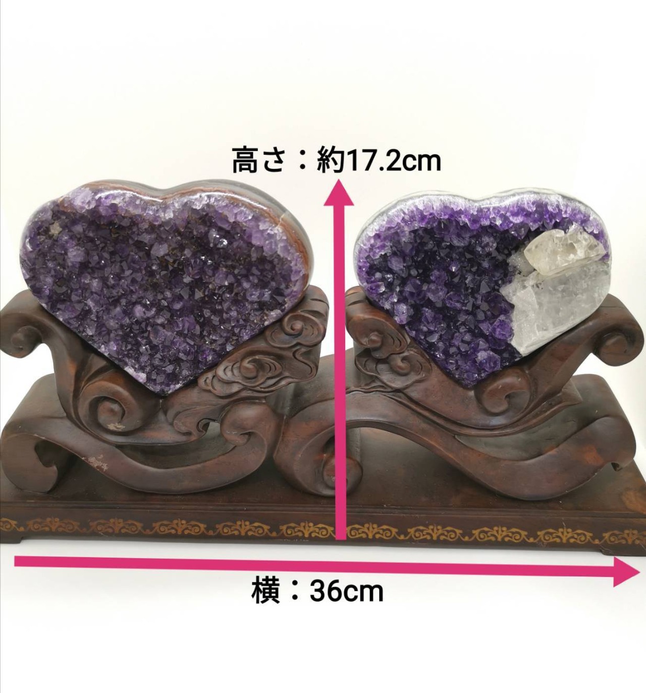 【愛の守護石】アメジスト ハート形2個セット カルサイト付 2月の誕生石・安眠・癒し・車酔い
