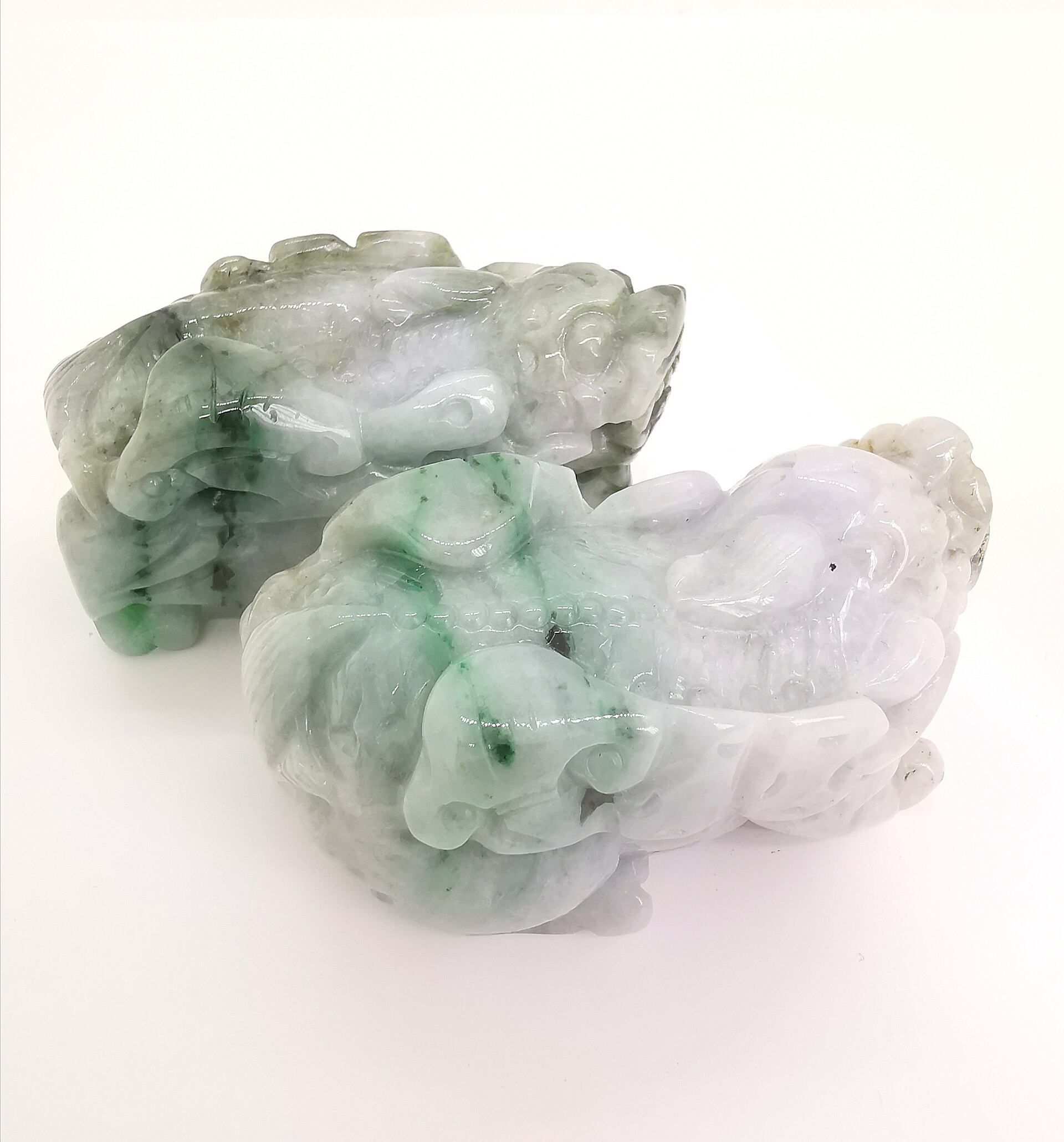 【蓄財のシンボル】金を獲得し貯め込む貔貅(ヒキュウ) 本翡翠 ペア置物 風水的に良い