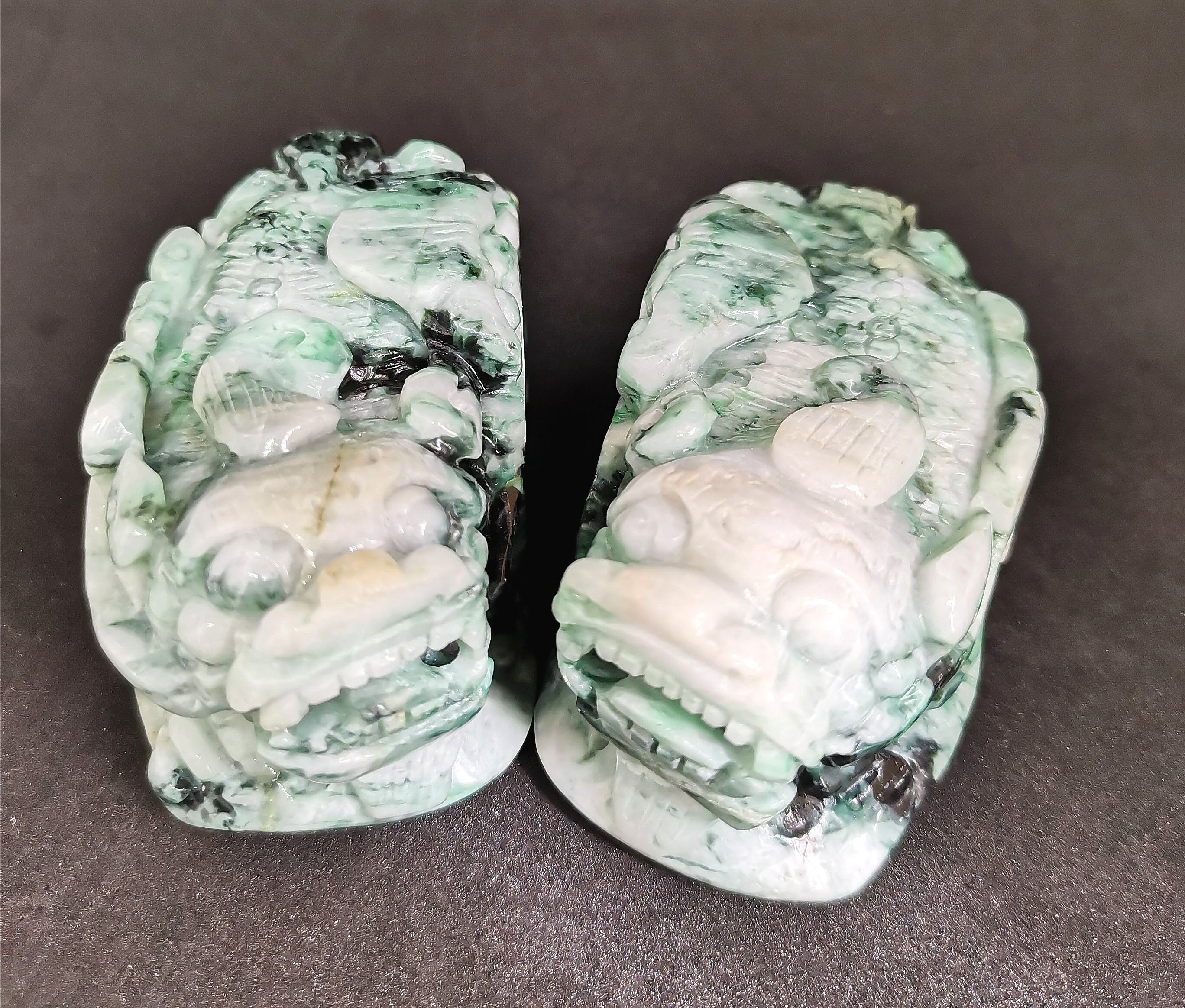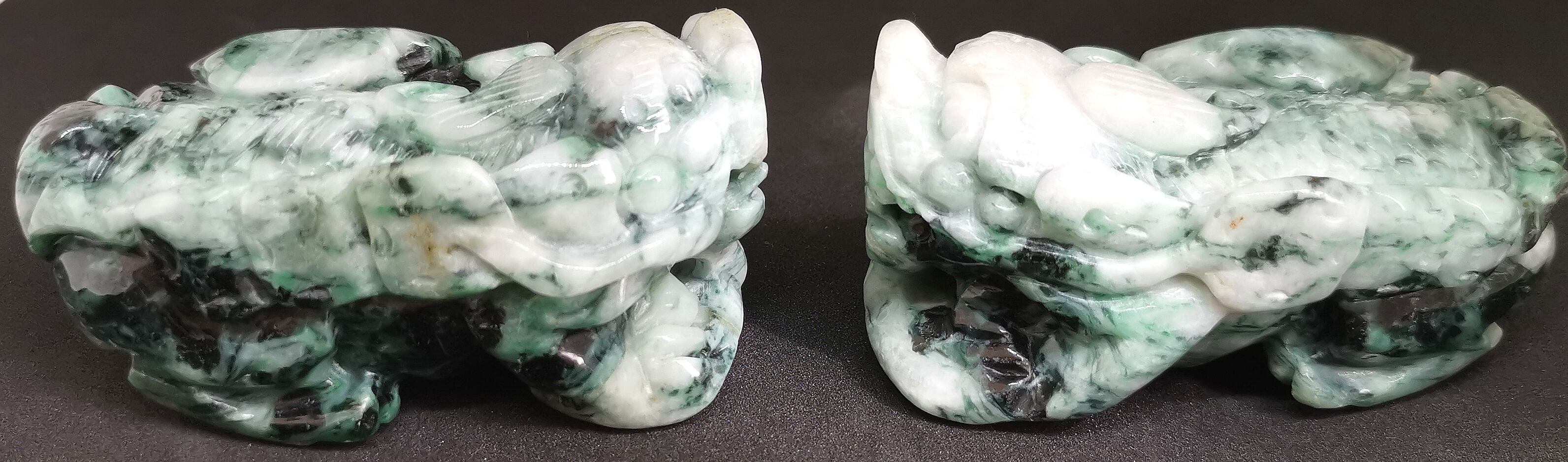 【蓄財のシンボル】金を獲得し貯め込む貔貅(ヒキュウ) 本翡翠 ペア置物 風水的に良い