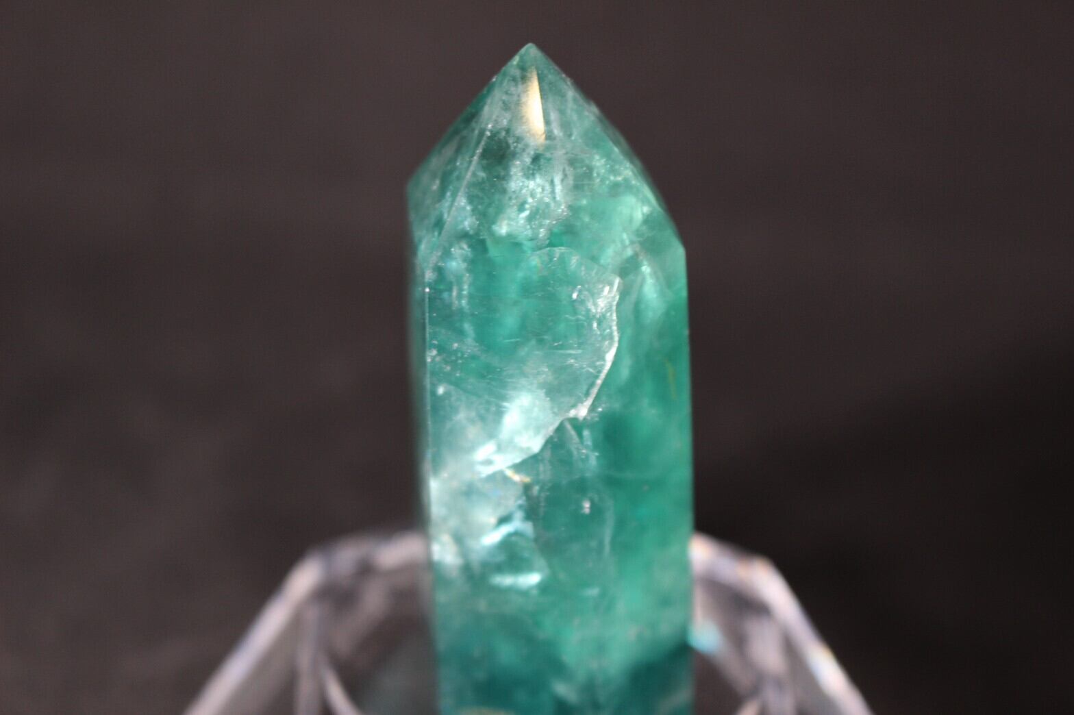 フローライトは、熱や紫外線による発光のほかに、結晶軸に沿って規則正しく割れやすい性質でも知られているので、取り扱いには注意が必要です。