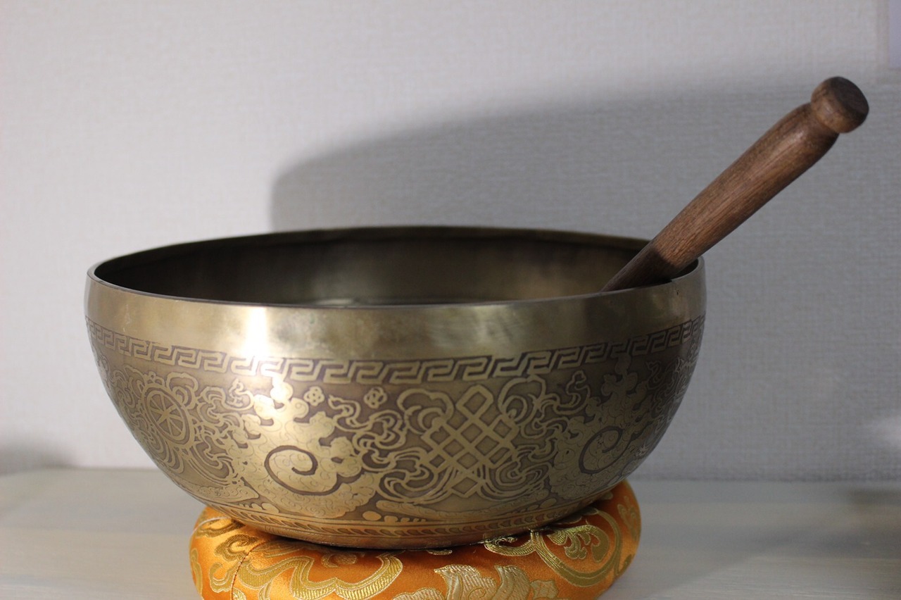 本場チベットで作られたシンキングボウルで、瞑想や空間の浄化にも使われています。