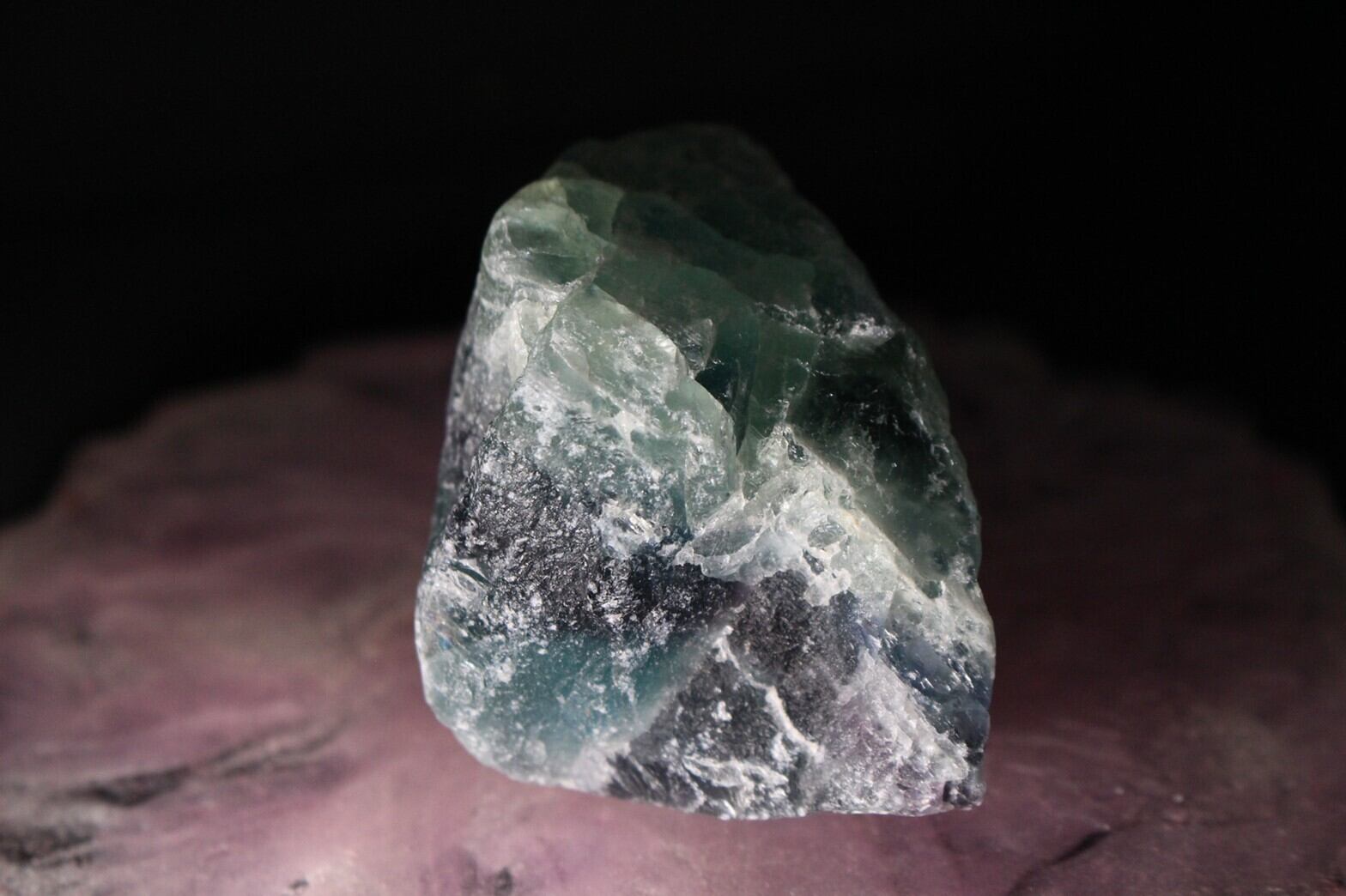 フローライトは、熱や紫外線による発光のほかに、結晶軸に沿って規則正しく割れやすい性質でも知られているので、取り扱いには注意が必要です。
