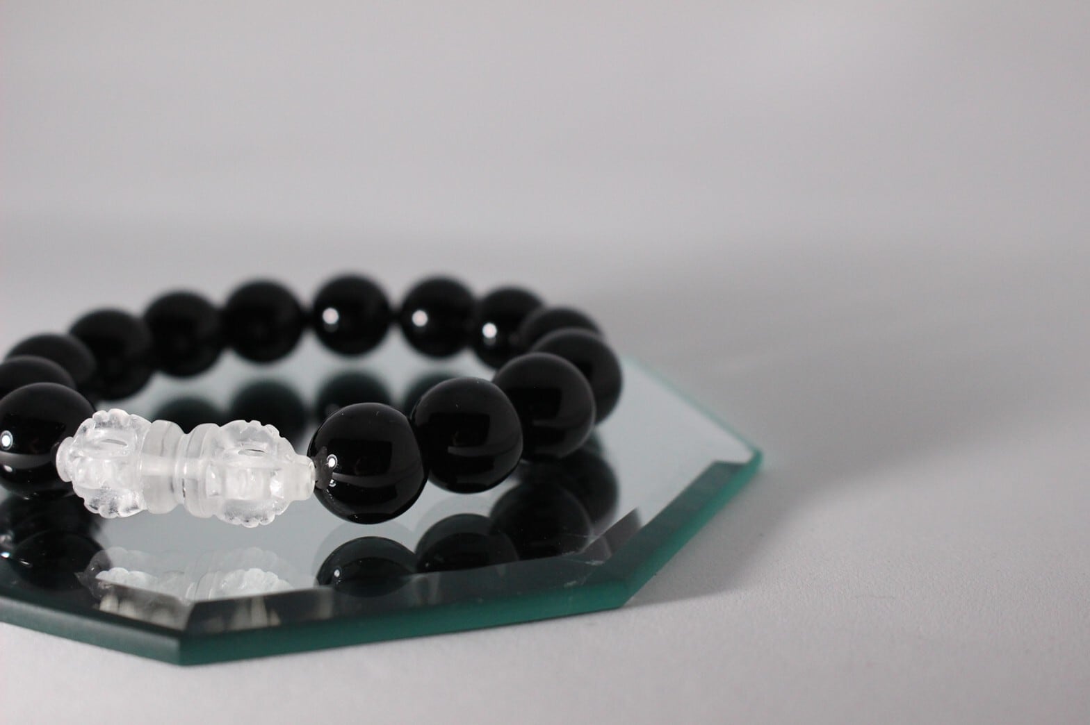 *霊障の強い方に大人気のバジュラという仏具水晶が入った霊除けに効果を発揮する絵梨子のオリジナルブレスレットとなります。